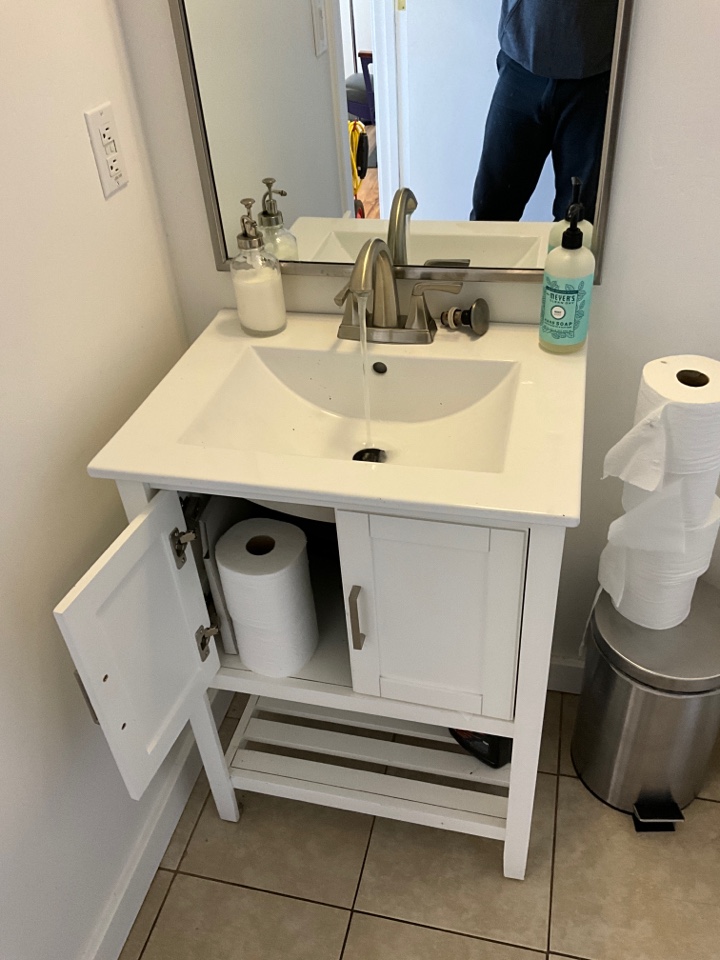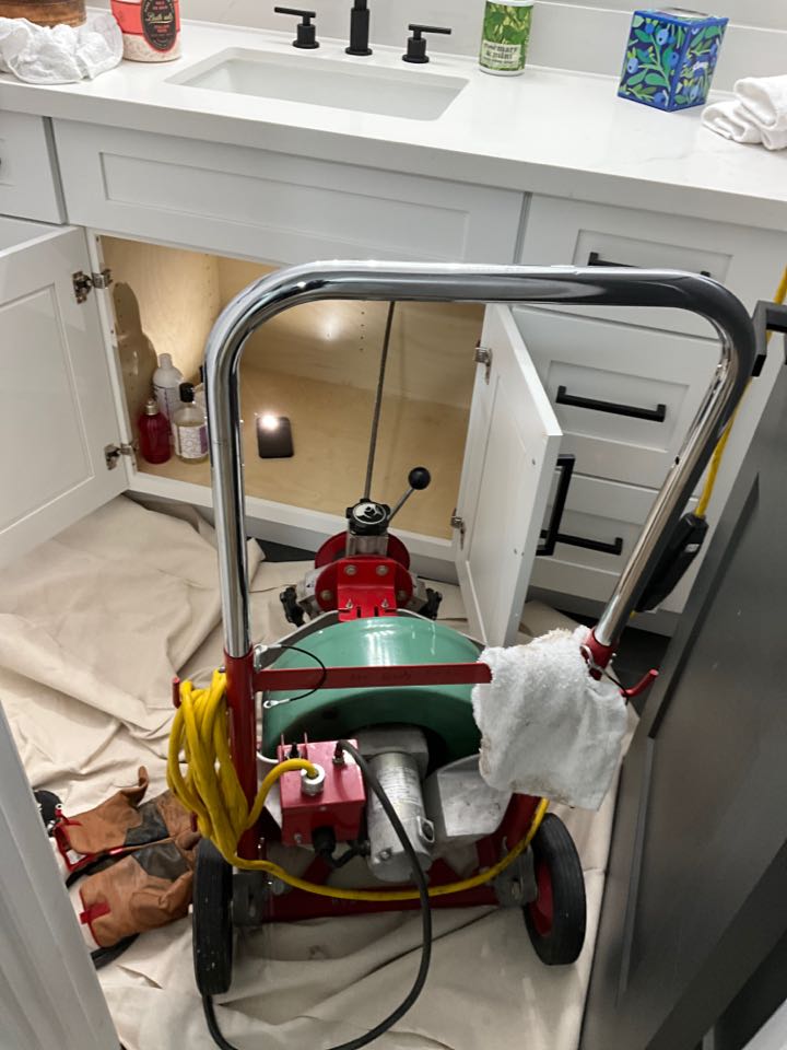 Ran rooter at sink to clear office bathroom clog